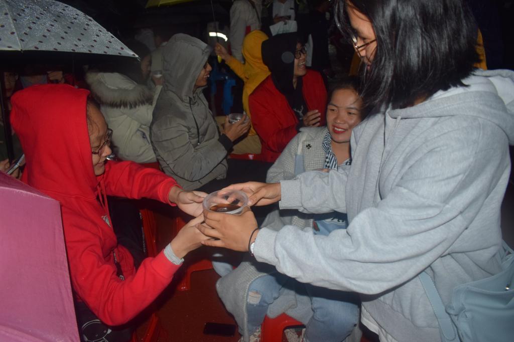 2019年10月17日晚,公司在南校田径场校庆舞台后方休息区域开展了“温暖姜汤”活动,公司团委书记韦喆和部分员工会成员参加了本次活动。