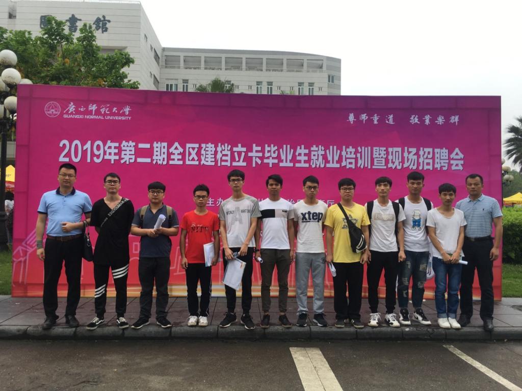 为大力推动贫困应届毕业生就业,进一步做好教育精准扶贫帮扶工作。公司2019届建档立卡和非贫困未就业的应届毕业生,于2019年5月18日上午8:00,参加广西师范大学育才校区举办的“2019年全区农村建档立卡贫困家庭普通高校毕业生就业培训暨现场招聘会”。