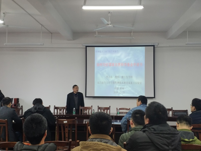 2018年12月25日,受公司邀请,南昌航空大学李志农教授(浙江大学博士,清华大学博士后,江西省高校中青年骨干教师,国家自然科学基金同行评审专家,国家自然科学基金民航联合基金重点项日、中国博士后基金项目、国家科技项目通讯评审专家,教育部学位与研究生教育发展中心通讯评议专家)来院举行题为“如何写出高质量的国家自然科学基金申请书”的专题讲座,机械工程公司副经理刘忠、全院中青年教师及其他公司慕名前来的老师聆听了报告。