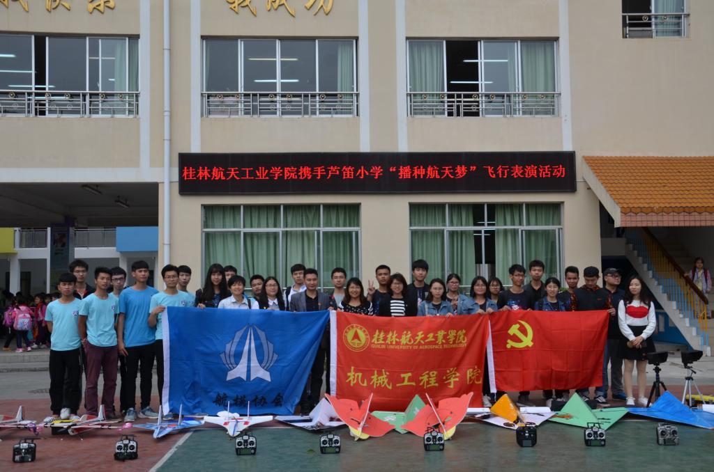 位于桂林市叠彩区的芦笛小学,是一所以“一体两翼”为办学特色的"窗口公司"。其教学理念与办学思想与公司推崇的航天文化精神达成契合。前期,公司与该校还间断性的开展过多次航模飞行器表演与航天知识文化宣传,丰富多彩的现场互动,不仅让员工们亲身感受到航天知识,激发了员工从知识的海洋中探索太空的热情,还使航天精神入校园、航天文化促成才的两校合作目的初见成效。