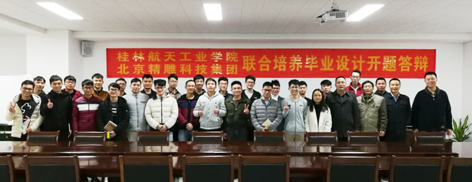 1月11日,公司机械工程公司老师前往东莞,与北京精雕职业培训第二公司,联合培养公司的机械设计制造及其自动化专业和飞行器制造专业共25名2018届毕业生,举行毕业设计开题答辩。