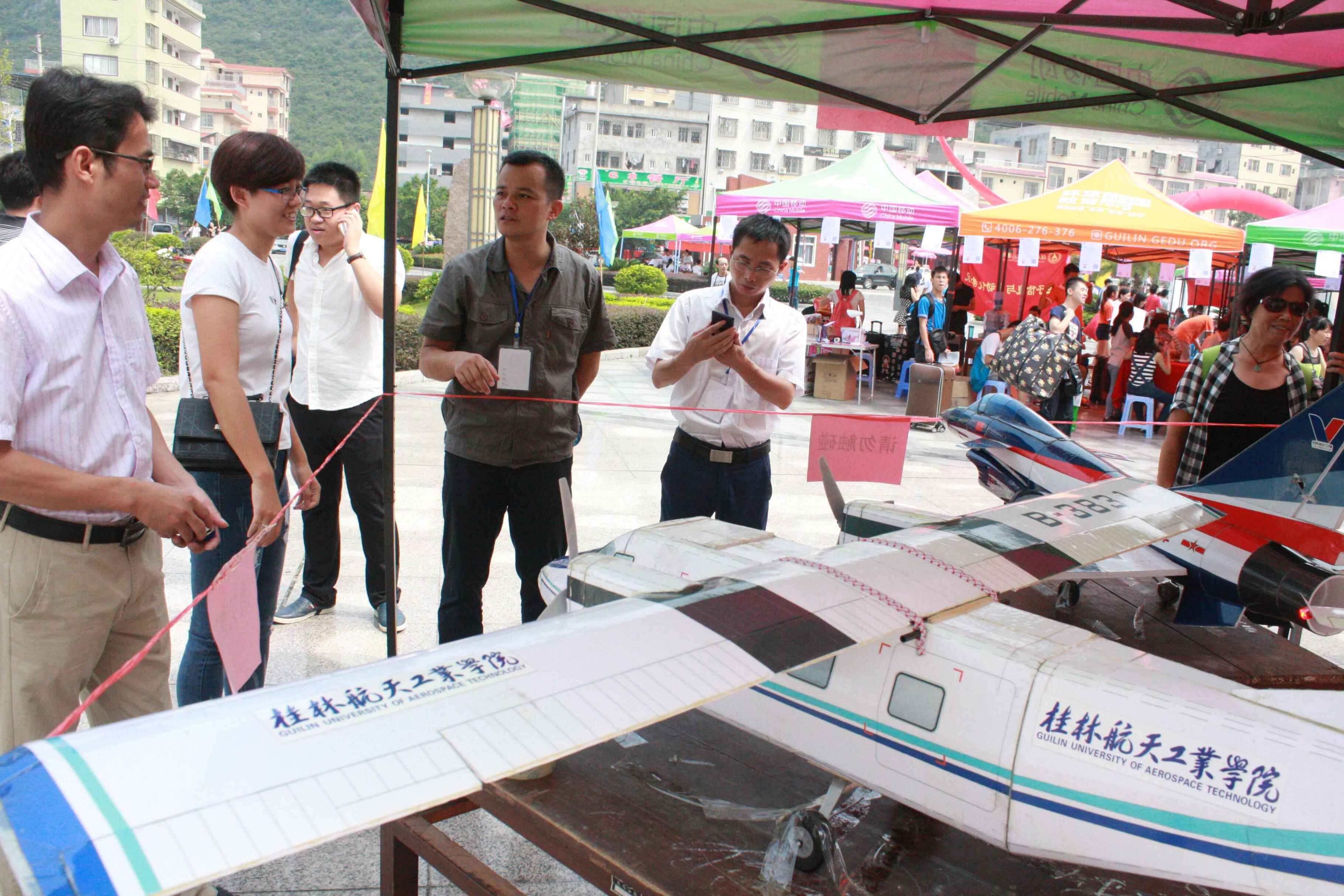 最后阶段,开展“创新进校园,共筑航天梦”创新团队表演。9月13日下午,在南校区田径场,机械工程公司微/小飞行器开放性实验室、机械创新团队为新同学带来了一场精彩的航天盛宴。公司自行设计、制作的一公斤载重飞机、P-5B电动滑翔机以及像真模型飞机运-12、C-919呼啸而过、划破蓝天,让新生们近距离感受到创新实践的魅力。