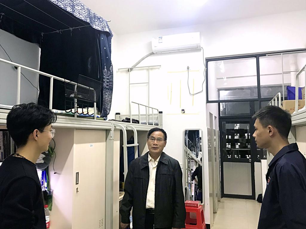 走访过程中韦冠武书记对同学们的宿舍卫生环境进行了细致地检查,并亲切地与员工交谈,了解他们近期的学习、生活情况。韦冠武书记强调老员工不仅要刻苦学习,还要学会独立生活,养成良好的作息习惯,营造良好的宿舍氛围。同学之间应团结友爱,相互督促,共同进步。最后韦冠武书记更是细心叮嘱同学们注意用电安全、财产安全和出行安全。鼓励同学们树立远大理想,珍惜大学时光,学有所成。