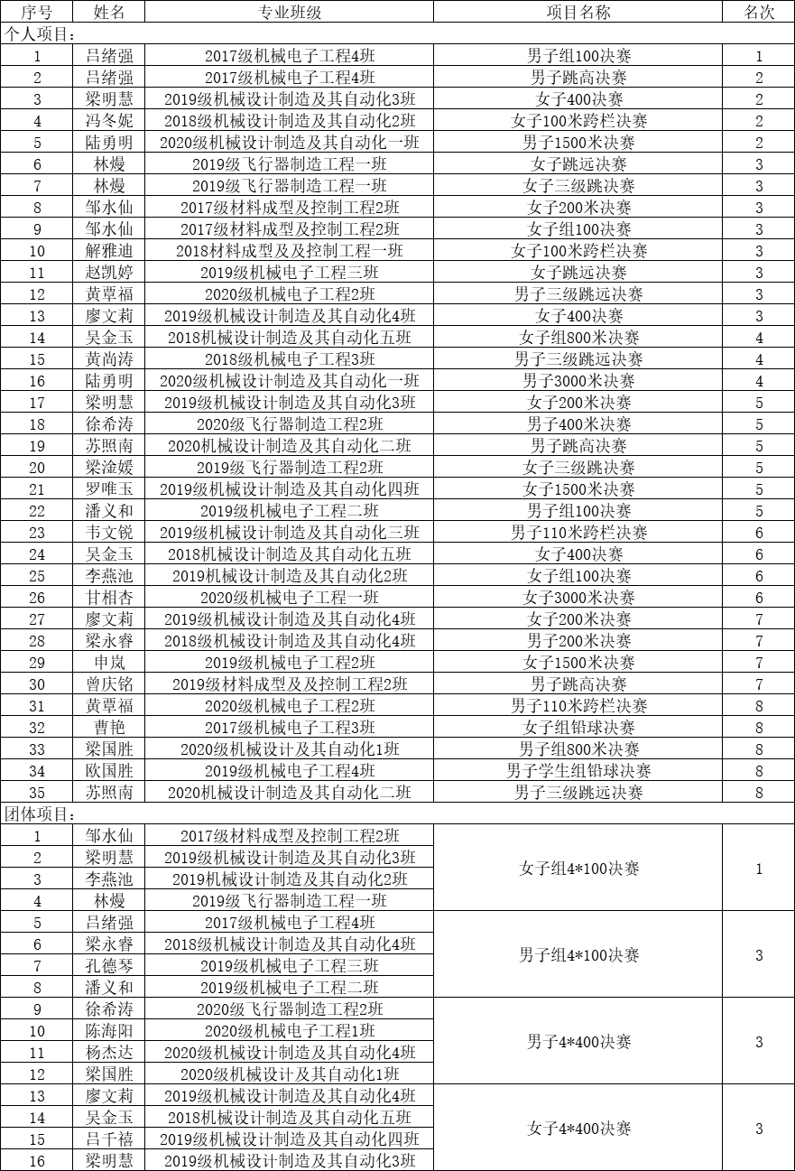 机械工程公司第三十九届田径运动会员工获奖名单如下所示: