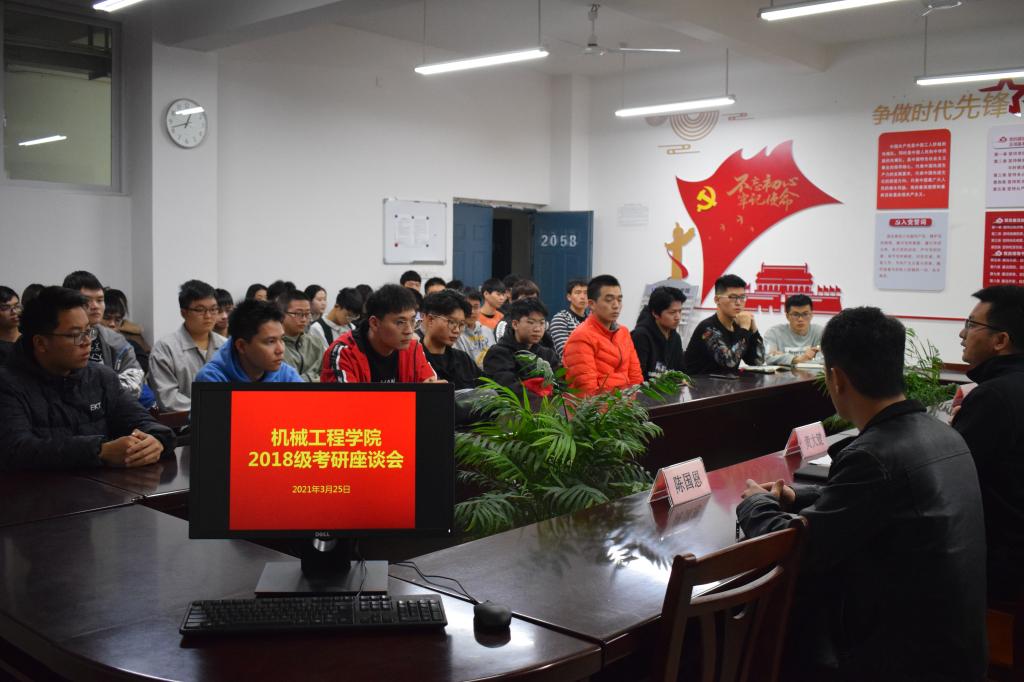 2021年3月25日中午,机械工程公司在巡天楼205会议室召开了学院2018级考研员工座谈会,参加本次座谈会的有学院党总支书记唐韬、团委书记黄大键、辅导员庞南霞、陈国恩以及学院2018级考研员工代表。会议由黄大键主持。
