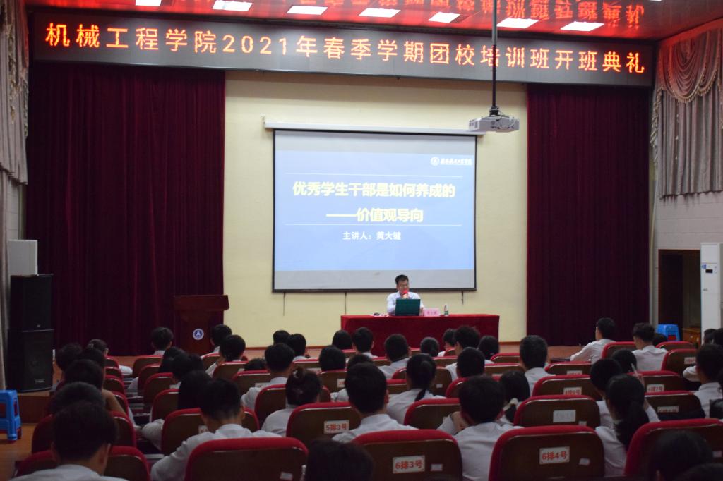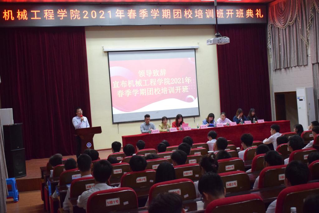 为了加强员工干部政治素质和工作能力,帮助员工们更快地成长,机械工程公司于2021年3月29日晚19:00在北校电教馆举行了2021年春季学期团校开班典礼。出席本次开班典礼的有公司团委书记,以及公司全体学工办教师,团委、员工会、新媒体中心及公司易班工作站的全体成员参加了培训班。