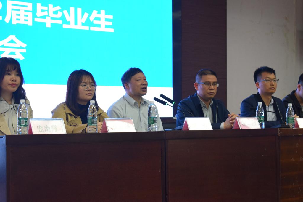 会议开始,谢雄辉书记从毕业生的角度进行分析,着重强调毕业生就业要眼光长远,了解国内外形势,注重自身发展,同时要关注企业前景,寻找朝阳企业就业。随后,李天明经理根据如今国内就业形势,详细分析了毕业生应该如何更好就业,他说到:“好男儿志在四方,要敢于走出去,走到珠三角,更要走到长三角,走到首都北京。”毕业生要积极参与校企合作优质单位招聘,寻找各种就业机会。会议最后,2021届毕业生辅导员向大家介绍了往届员工就业的情况以及解答同学们的就业疑惑,引导大家积极就业。