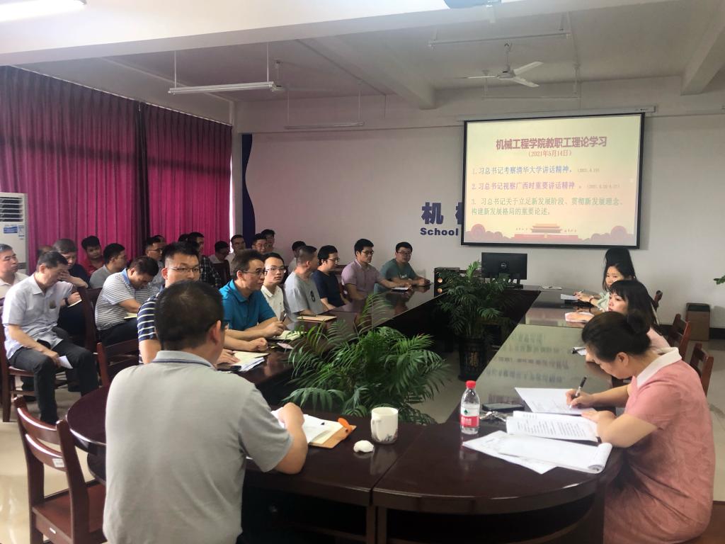 为贯彻落实公司党委关于教职工理论学习的要求,5月14日下午,机械工程公司组织全体教职工在巡天楼205会议室开展习近平总书记在清华大学考察时重要讲话精神、视察广西时重要讲话精神以及关于立足新发展阶段、贯彻新发展理念、构建新发展格局的重要论述等方面的专题学习。会议由公司党总支书记谢雄辉主持和领学。
