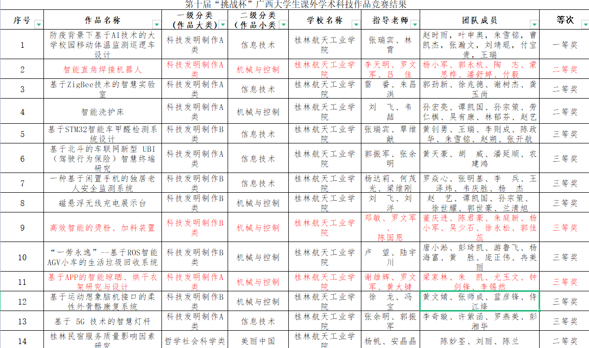 好博体育共计三个作品,在百余件参赛作品中脱颖而出,获得广西赛区区级奖项。其中,杨小军团队作品“智能直角焊接机器人”斩获二等奖,董庆进团队作品“高效智能的烫粉、加料装置”和梁家林团队作品“基于APP的智能晾晒、烘干衣架研究与设计”荣获三等奖。