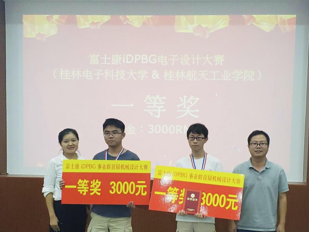 9月29日,富士康科技集团iDPBG事业群首届电子&机械设计竞赛总决赛暨颁奖仪式在桂林电子科技大学花江校区圆满举行。在本次活动中,公司400多员工组成的147支参赛小组参与比赛,与桂林电子科技大学学子同台竞技。其中,公司学子荣获特等奖2组,一等奖1组,二等奖4组,三等奖7组。