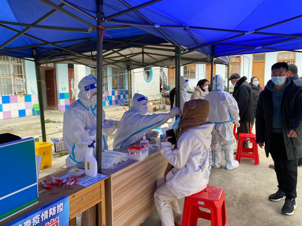 图为:农光照配合医务人员为当地居民进行核酸检测现场