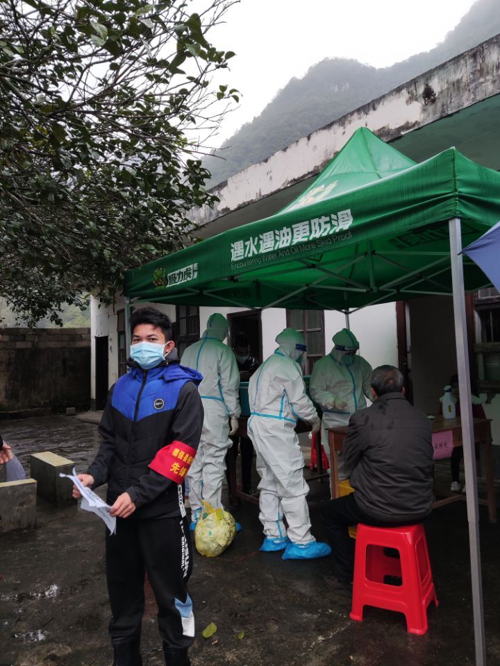 家住百色市田林县的韦欣欣,担任当地者苗乡八亨村核酸检测点志愿者,协助信息登记、扫码采样、入户宣传记录工作。在疫情特殊时期,作为一名青年老员工,应当挺身而出,为家乡的防疫工作贡献自己的一份力量。
