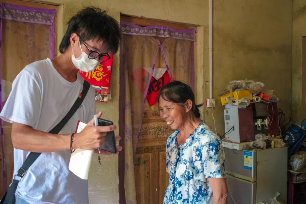 图为实践成员邀请村民填写线上调查问卷