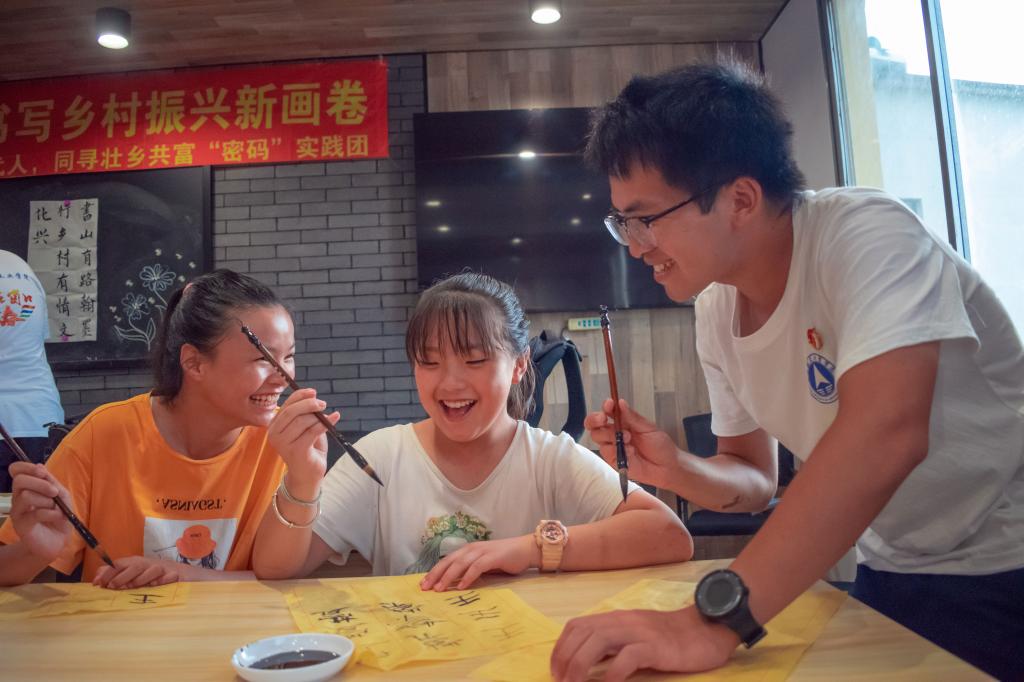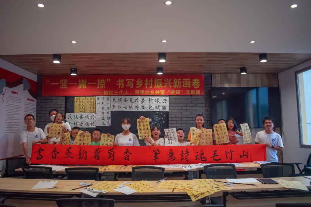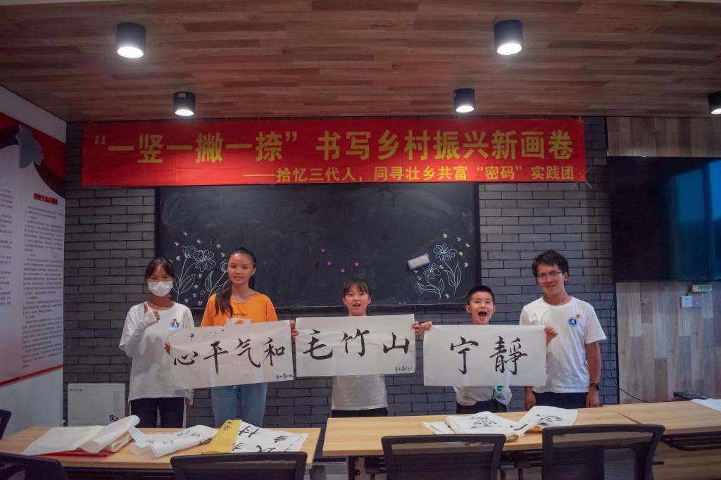 团队成员以敢于创新的思想精神,助力乡村文化振兴为目的,带领孩子们领略书法艺术的魅力,传播国学经典,激发新生力量,且走访调研了毛竹山村的脱贫致富之路,书写了毛竹山村美丽生活、经济繁荣的篇章。