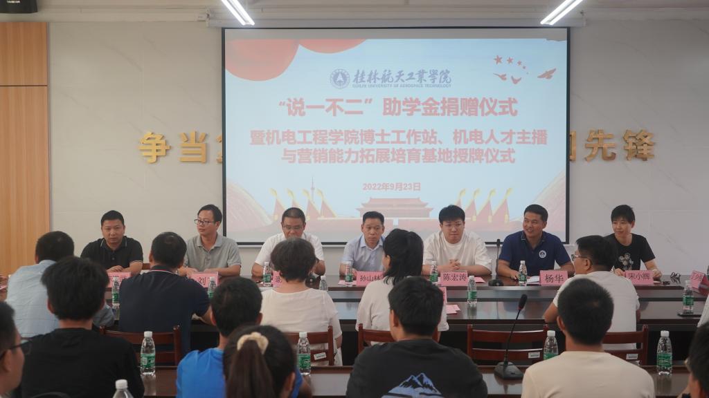 此次“说一不二”助学金,主要资助公司20名2022级品学兼优的贫困学子,每名1000元,助学金额共计两万元。仪式结束后,公司召开了博士工作站暨机电人才主播与营销能力拓展培育座谈会。会议围绕工作站运行事宜、合作理念与模式,以及科研项目转化等内容展开研讨,并达成初步共识。