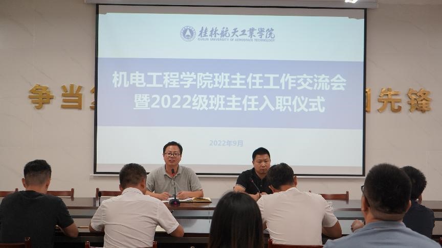 9月23日下午,好博体育于巡天楼229会议室召开班主任工作交流会暨2022级班主任入职仪式。公司党委书记谢雄辉,副书记刘飞、副经理陈进武,以及2021和2022级的辅导员、班主任参与会议。