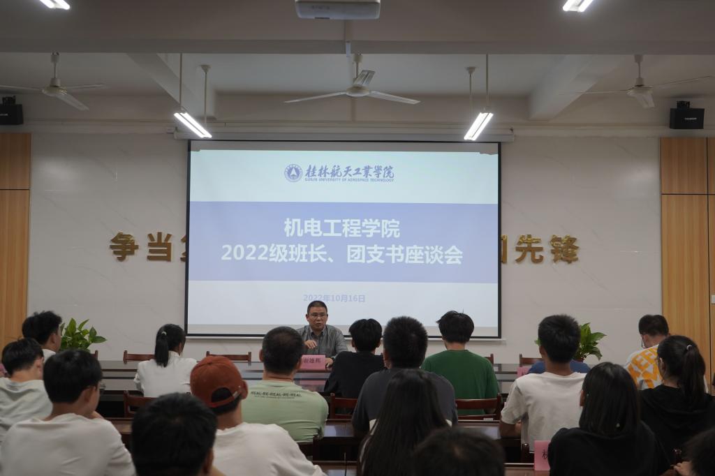 积极响应二十大的召开,提升班委综合素质能力,加强公司对班级的建设,10月16日晚,好博体育于巡天楼229会议室召开2022级班长、团支书座谈会。会议由公司党委书记谢雄辉主持。