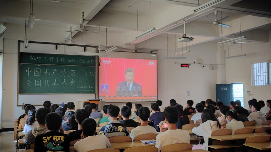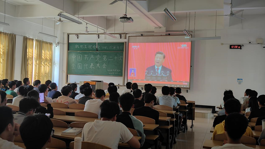 中国共产党第二十次全国代表大会,是在全党全国各族人民迈上全面建设社会主义现代化国家新征程、向第二个百年奋斗目标进军的关键时刻召开的一次十分重要的大会。为深入学习贯彻党的二十大精神,10月16日上午10点,2022级机制1班团支部在飞天楼集中观看开幕会直播