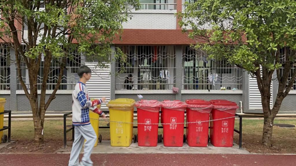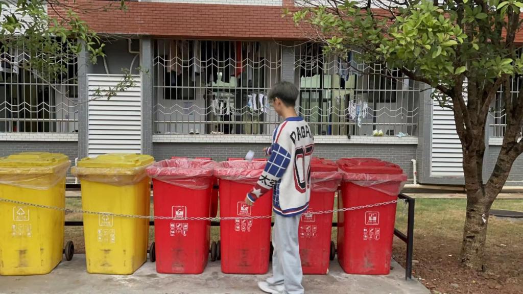 “看到旁边的垃圾桶,我想起了口袋中的垃圾,于是便随手掏出垃圾朝着那些垃圾桶丢了出去。”