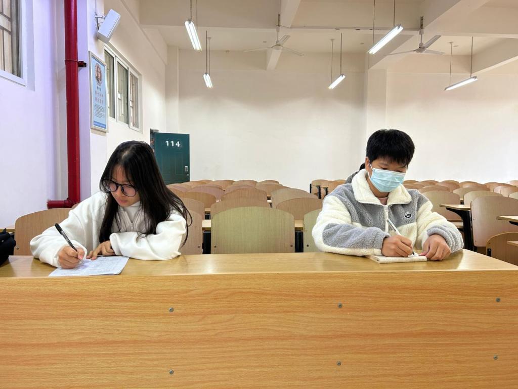 “随着期末的临近,各科陆陆续续开始了期末考试。”