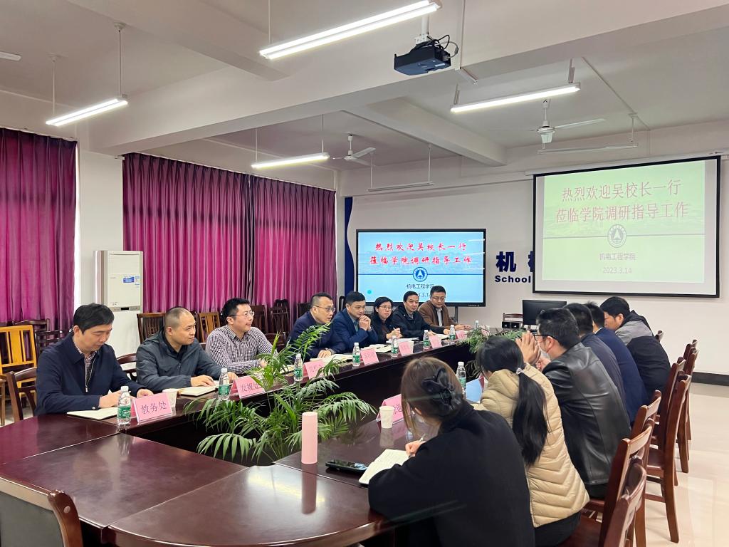 3月14日上午,公司董事长吴尽昭莅临公司调研指导工作,副董事长吴世先,党校办、学工处、发规处、人事处、教务处以及科技处领导陪同调研。公司领导班子成员,各专业、教研室负责人参加会议。