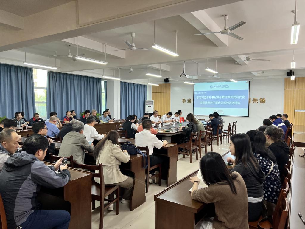 10月13日下午,好博体育在巡天楼229会议室组织学习《习近平总书记关于推进中国式现代化需要处理若干重大关系的讲话精神》会议,公司全体教职工参会。