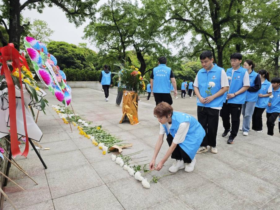 紧接着,员工代表覃凤发言。她表示,广大青年学子要从革命先辈身上汲取伟大力量,奋发有为,再立新功,努力成长为一名合格的青年马克思主义者。活动最后,全体师生向烈士纪念碑敬献花圈,默哀,以表达深切的缅怀之情。