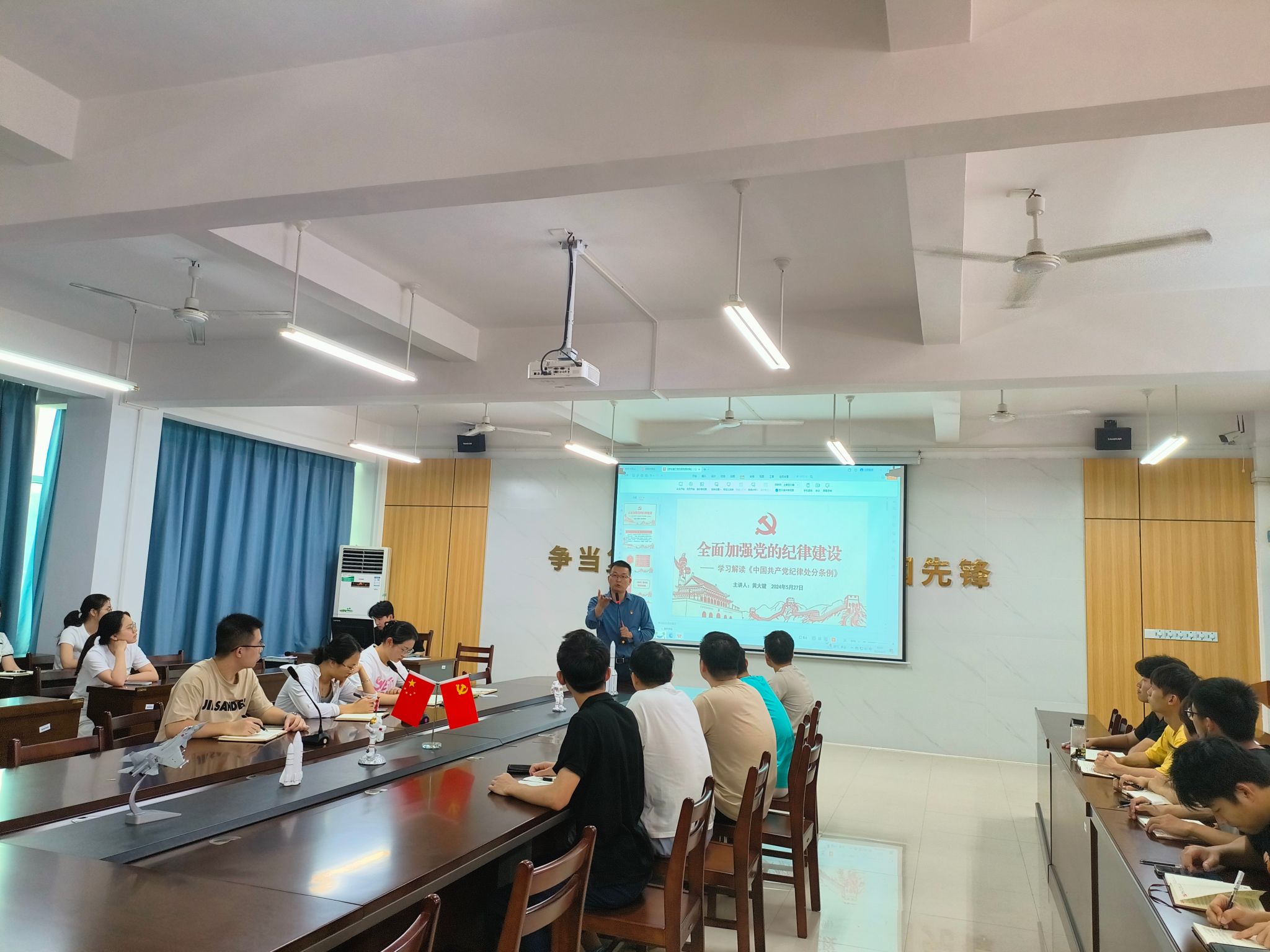 为深入贯彻落实党中央关于党纪学习教育的工作部署,推动党纪学习教育走深走实,进一步增强支部员工党员的党性锤炼和纪律意识,2024年5月27日,好博体育员工第三党支部在巡天楼229会议室开展主题为“全面加强党的纪律建设——学习解读《中国共产党纪律处分条例》”主题党课,党课由支部书记黄大键同志主讲。