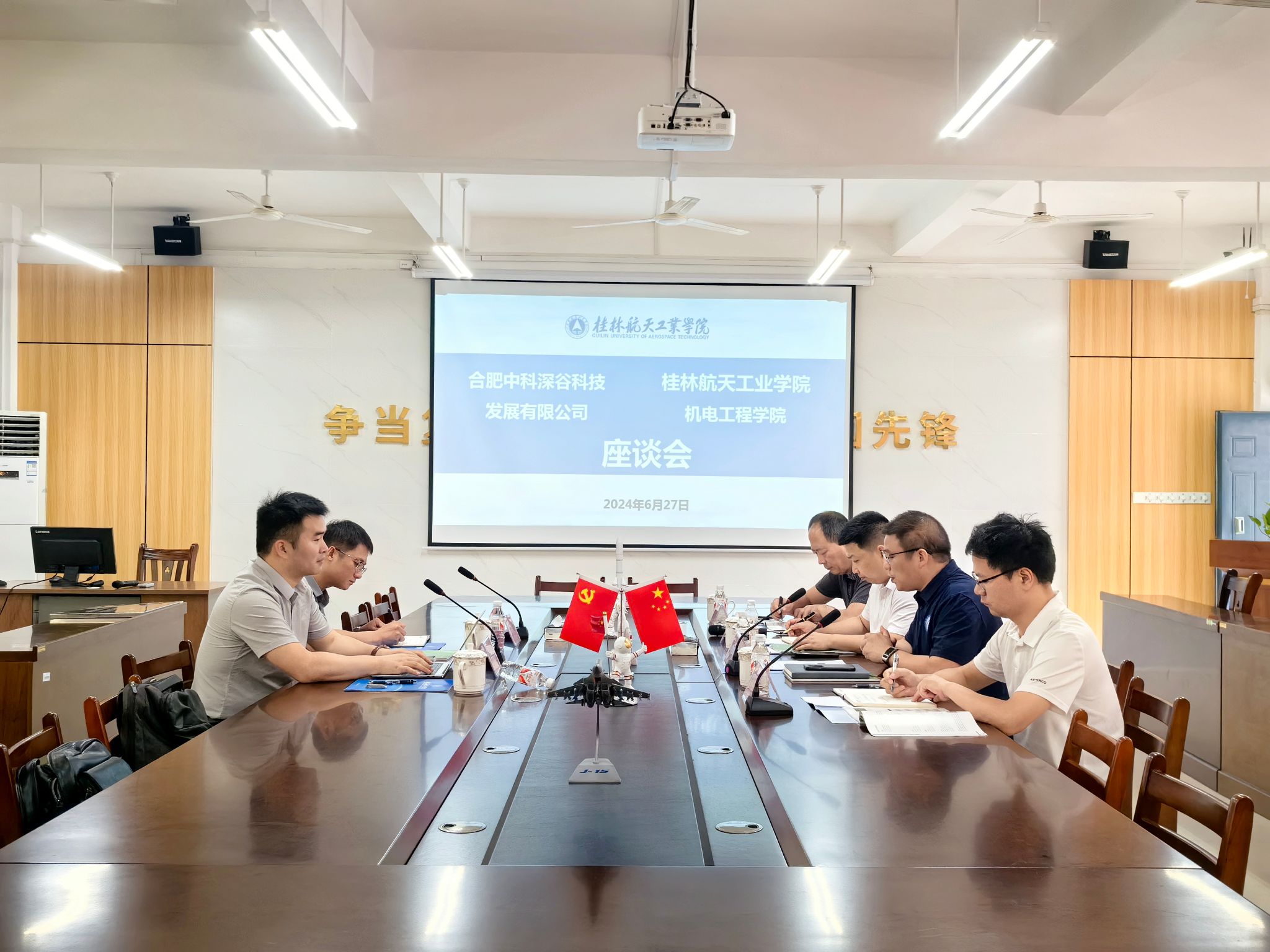 6月27日上午,合肥中科深谷科技发展有限公司教育事业部总经理任浩一行来校调研考察,公司党委书记谢雄辉、副经理陈进武及博士代表参与合作洽谈。