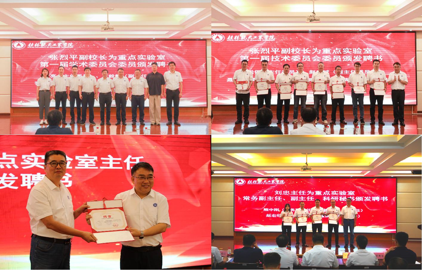 大会为广西特种工程装备与控制重点实验室揭牌,成立了实验室学术委员会、技术委员会,张烈平代表公司为委员颁发聘书。北京航空航天大学严亮教授及中航北京航空精密机械研究所研究员罗松保分别当选为学术委员会主任、技术委员会主任,并就实验室的定位、规划和作为提出了建设性的指导意见和美好的期待。