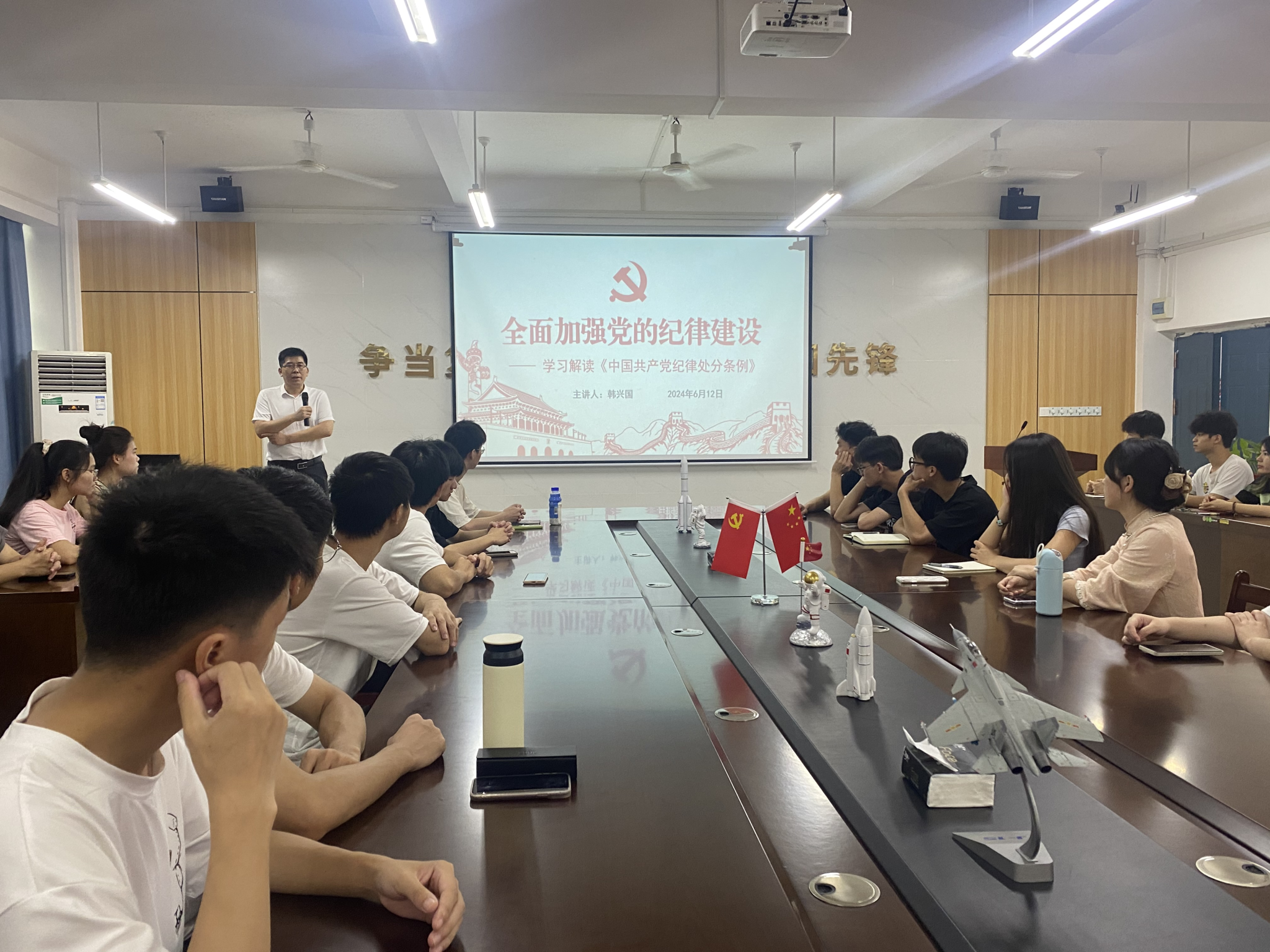 为深入学习《中国共产党纪律处分条例》,6月12日,好博体育于巡天楼229会议室召开“全面加强党的纪律建设”的讲座。本次讲座由好博体育经理韩兴国主讲,各年级党员代表参加聆听。