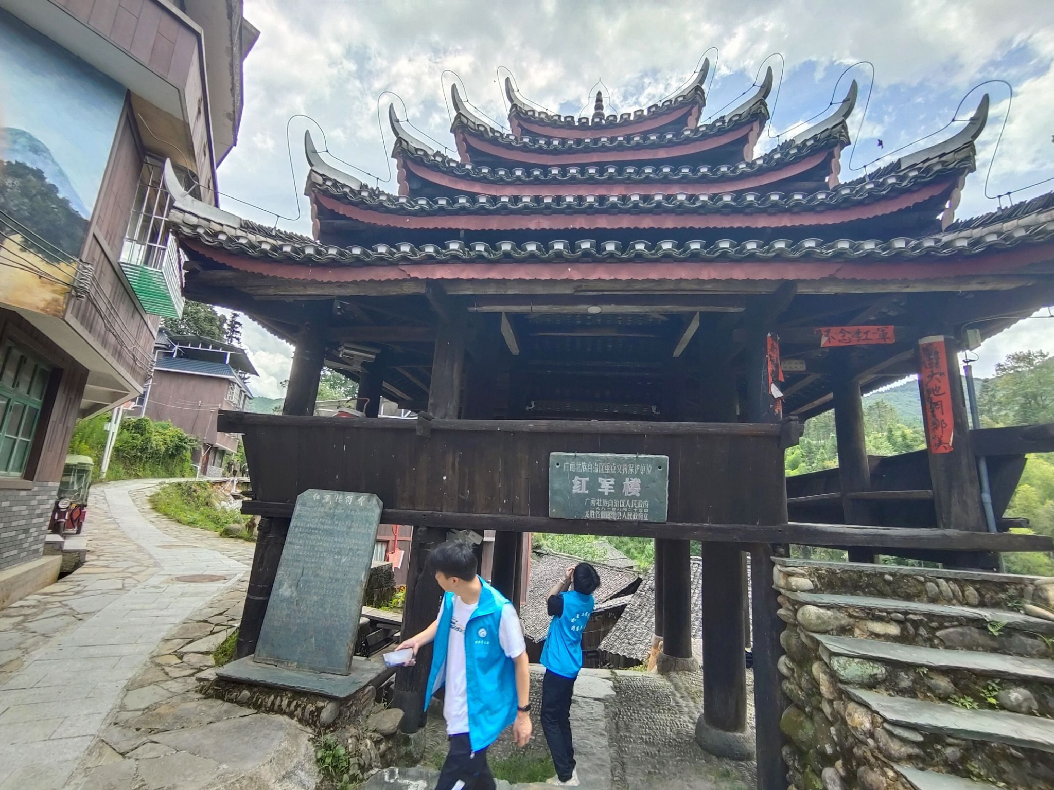 龙坪村,一个被岁月雕琢的古老村落,如今依然承载着厚重的革命历史。当队员们踏入龙坪塞上红军楼和审敌堂的那一刻,仿佛穿越了时空,回到了那个烽火连天的年代。那些斑驳的字迹、陈旧的木头,都在低语,诉说着往昔的峥嵘岁月。红军楼柱子上的火烧痕迹,见证了当年国民党军队的肆虐与红军战士的英勇无畏。他们奋不顾身地扑灭了大火,保住了寨子里人的生命。这种舍生忘死的精神,让人不禁为之动容。