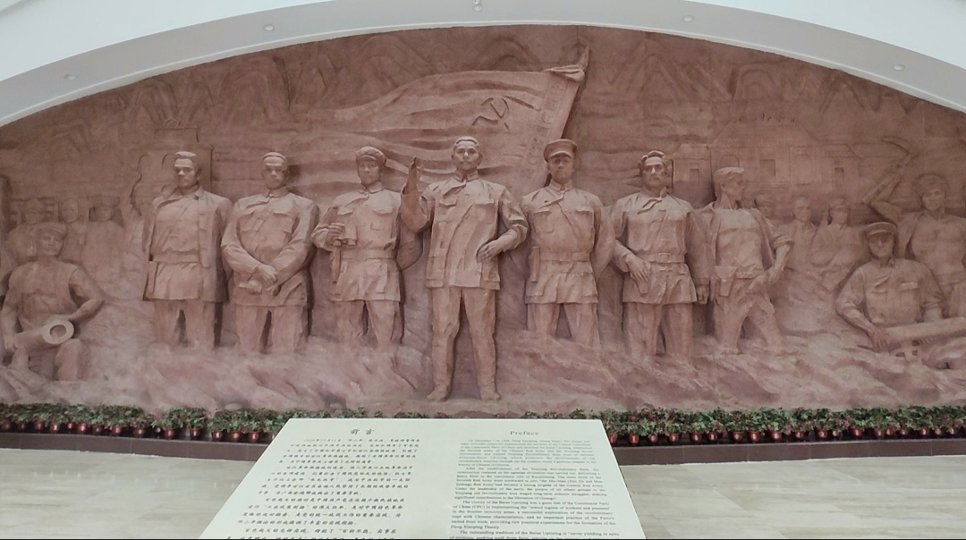 进入百色起义纪念馆中,迎面而来的是先辈们严嵩的雕塑,一旁的党旗显得熠熠生辉,望着旗下的入党誓词,小组成员们思绪万千。