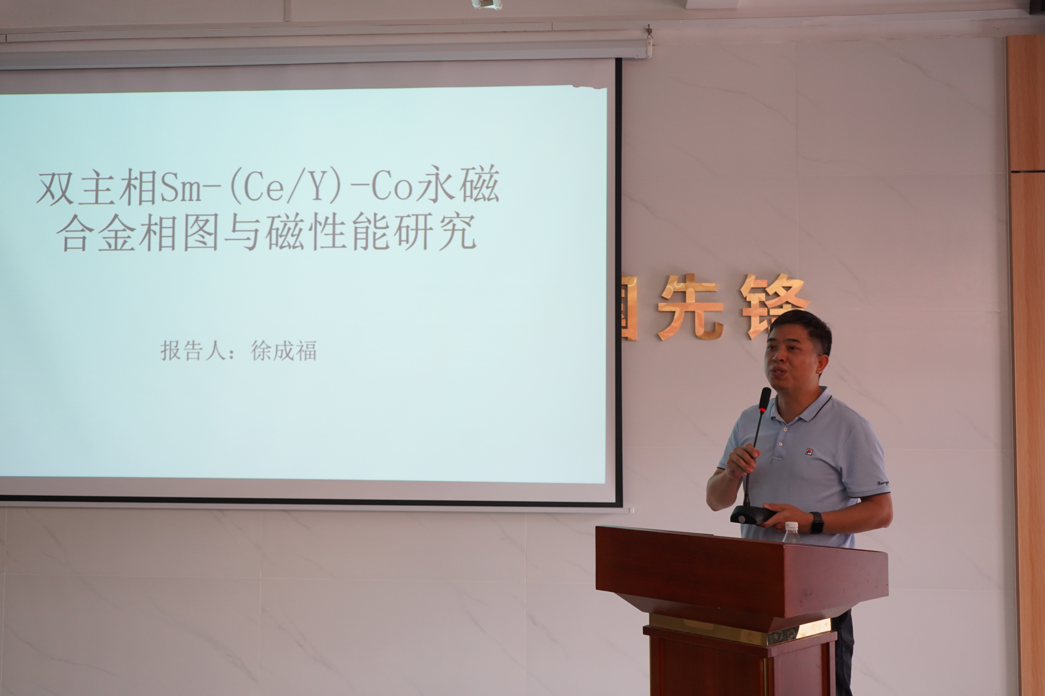 交流会上, 7位博士教师和2名研究生代表详尽报告了各自研究领域的研究工作、研究方法、研究思路。博士代表陈进武、刘坡、徐成福、邓文忠、刘奇星、宋小辉、史双喜和研究生代表分别以题为“钒基锆石微波介质陶瓷的结构与性能研究”、“多半径比例组合下双向弯曲变形行为研究”、“双主相Sm-(Ce/Y)-Co永磁合金相图与磁性能研究”、“轮胎电加热硫化关键技术及工艺特性研究”、“航空碳纤维复合材料叶片研制”、“生物质材料改性聚乳酸复合材料3D打印”、“低成本高性能钛合金高通量设计”、“制备及强韧化机制研究”、“连续纤维增强复合材料3D打印及性能研究”做了专题汇报。