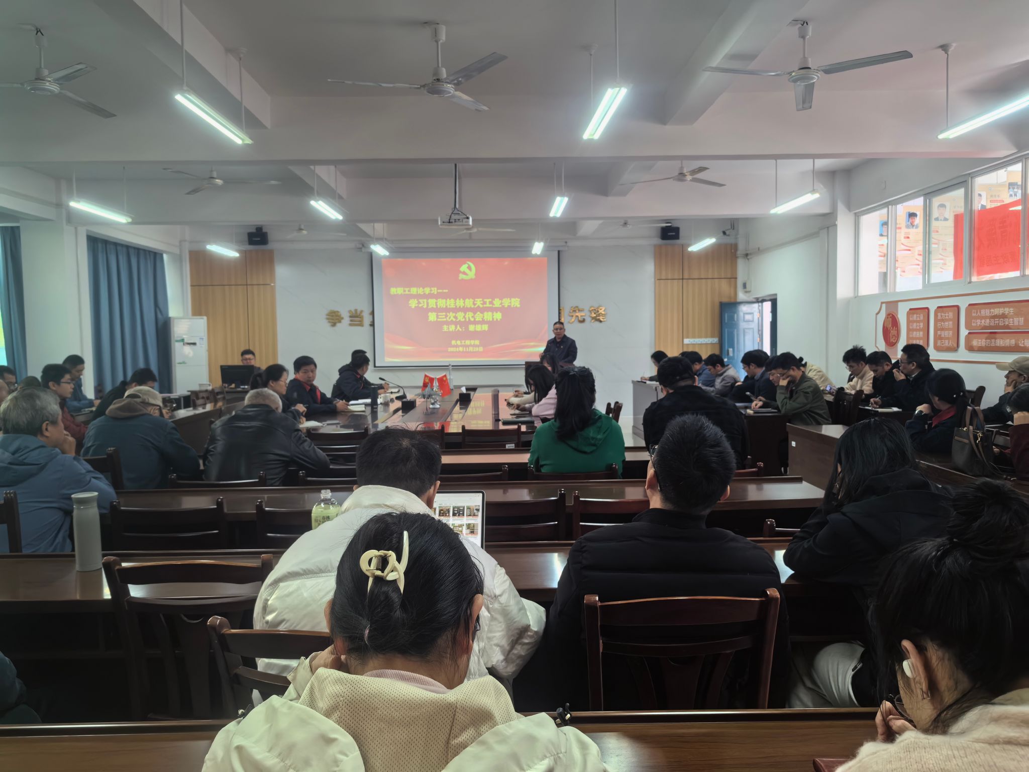 11月29日,好博体育组织全体教职工深入学习好博体育第三次党代会精神,党委书记谢雄辉领学,为教职工们深入解读了党代会的重要内容和精神实质。