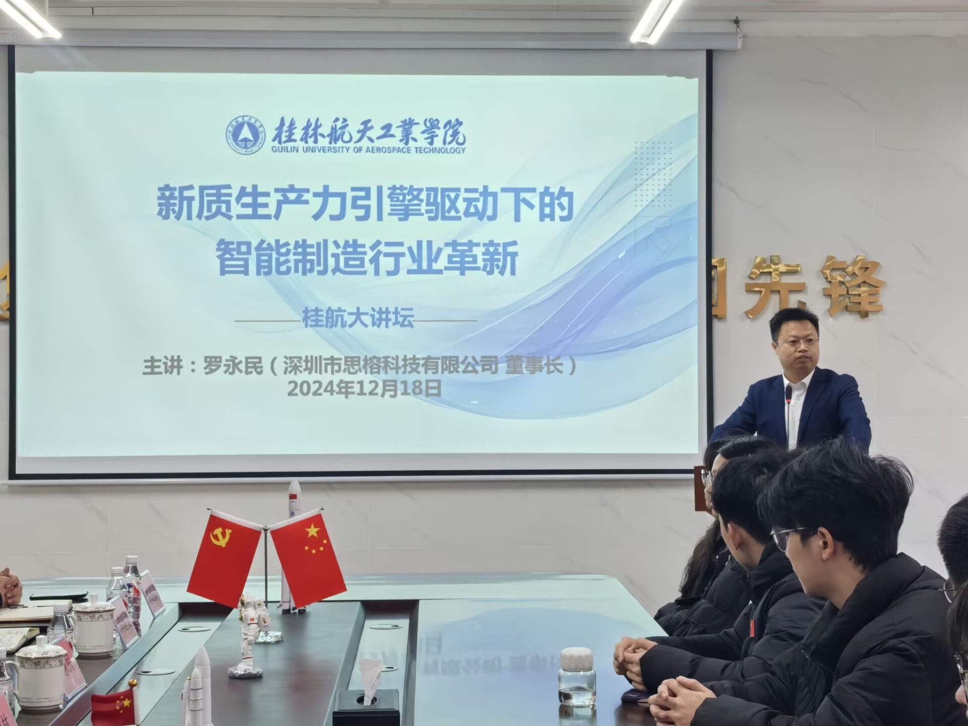 12月18日上午,公司邀请深圳市思榕科技有限公司董事长罗永民先生来校,在巡天楼229会议室为师生作题为《新质生产力引擎驱动下的智能制造行业革新》的报告。公司党委副书记孙山林,好博体育相关领导、教师代表以及100余名员工代表聆听讲座。讲座后,孙山林为罗永民先生颁发了客座教授聘书。