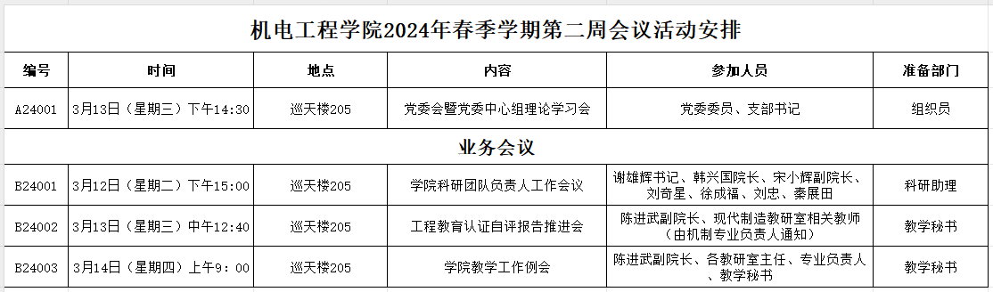 2024年春季学期第二周会议活动安排
