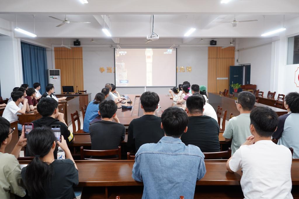 4月25日晚,好博体育组织公司师生观看神舟十八号飞船的直播发射。公司党委书记谢雄辉、副书记马世文、副经理陈进武,以及各党支部师生代表、员工班委代表等齐聚一堂,共同见证这一激动人心的时刻。